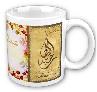 Voir l'ensemble des mugs dédiés au prénoms calligraphiés en arabe (Mugs prénoms arabes et musulmans féminins - Mugs prénoms français)