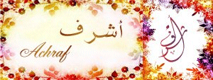Signification (sens) du prénom ’Achraf (Achraf) أَشْرَف: Variante de charîf (شَرِيف), signifiant honorable, noble, sublime. Chevaleresque. Descendant du Prophète Muhammad.