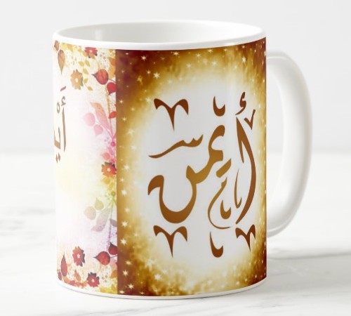 Voir l'ensemble des mugs dédiés au prénoms calligraphiés en arabe (Mugs prénoms arabes et musulmans féminins - Mugs prénoms français)