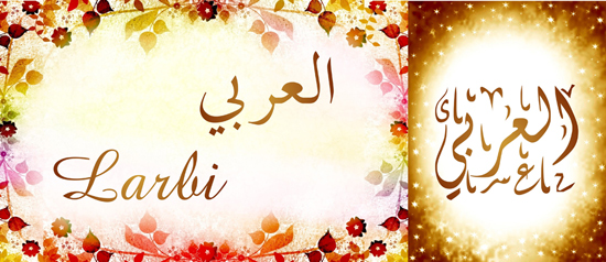 Signification (sens) du prénom L’arbiyy (Larbi, Larabi) لْعَرْبِيّ: Diminutif d’Al-‘Arabiyy, signifiant l’Arabe. Al-‘Arabiyy, désigne aussi bien le Prophète Muhammad que la langue arabe. L‘arbiyy Ibn Mhîdiyy ou Larbi Ben Mhidi (1923-1957) est un militant, engagé dans le FLN durant la guerre d’Algérie (1954-1962).