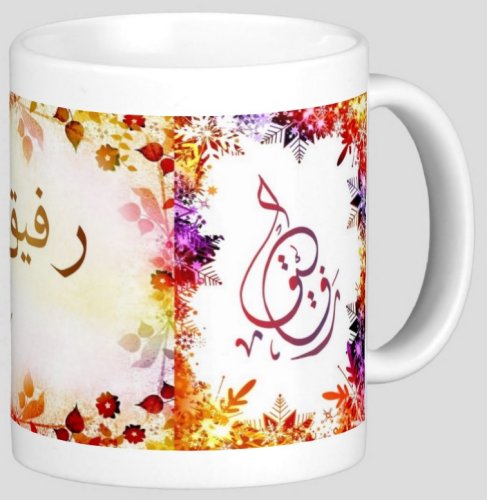 Voir l'ensemble des mugs dédiés au prénoms calligraphiés en arabe (Mugs prénoms arabes et musulmans féminins - Mugs prénoms français)