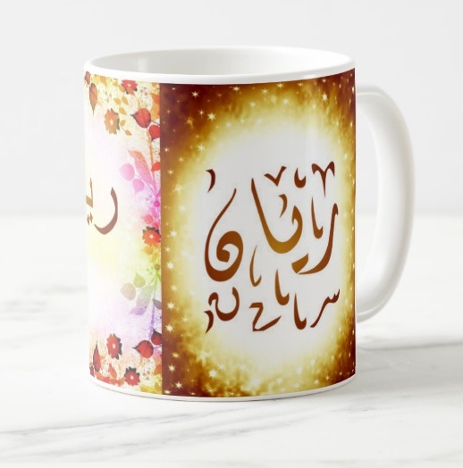 Voir l'ensemble des mugs dédiés au prénoms calligraphiés en arabe (Mugs prénoms arabes et musulmans féminins - Mugs prénoms français)