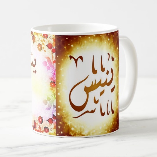 Voir l'ensemble des mugs dédiés au prénoms calligraphiés en arabe (Mugs prénoms arabes et musulmans féminins - Mugs prénoms français)
