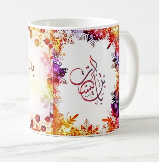 Tasses (mugs) en céramiques avec inscriptions calligraphiques artistiques arabes des prénoms. Oeuvre unique... Idée originale de cadeau !