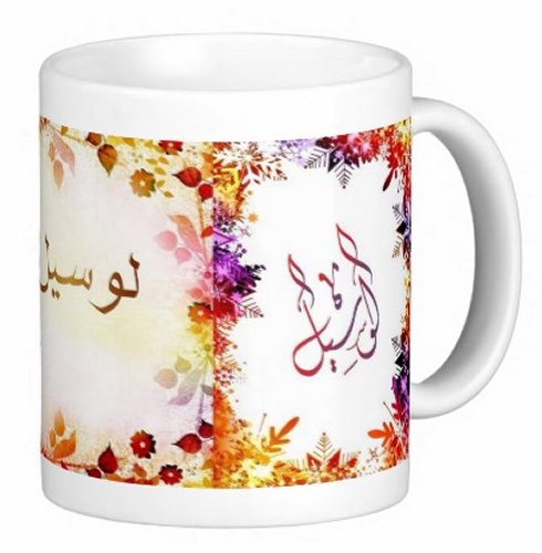 Tasses (mugs) en céramiques avec inscriptions calligraphiques artistiques arabes des prénoms. Oeuvre unique... Idée originale de cadeau !