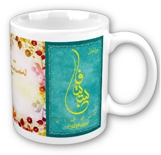 Voir l'ensemble des mugs dédiés au prénoms calligraphiés en arabe (Mugs prénoms arabes - Mugs prénoms français féminins)