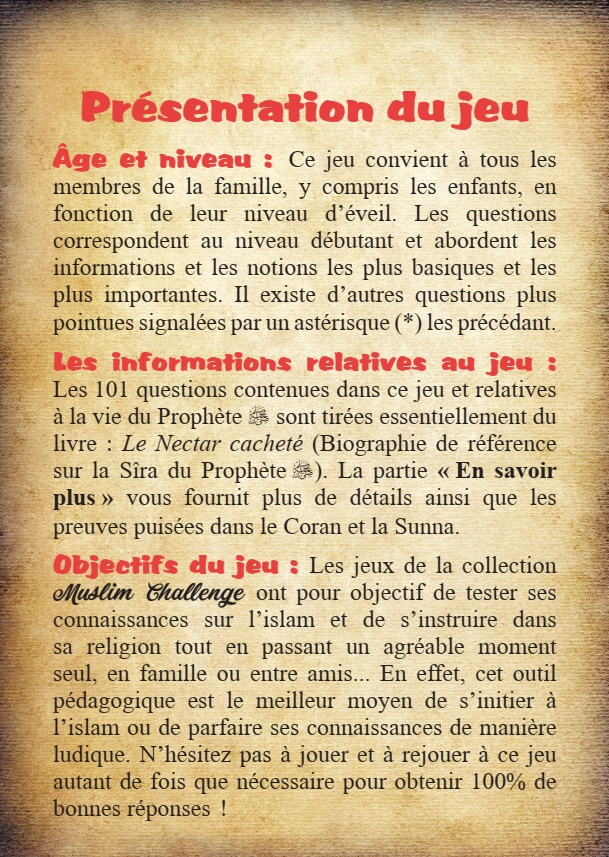 Pack 4 Jeux "Mouslim Challenge" : La Croyance et le Dogme ('aqîda) - Le Coran et les livres saints - Le Prophète Muhammad (saw) - Les compagnons - REF. 38945 (35.60 €) - En Promotion à 29.90 €