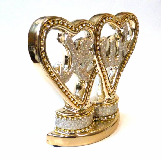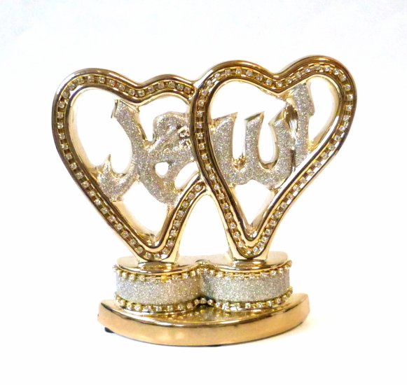Objet décoratif en porcelaine doré et argenté avec calligraphies Allah - Muhammad (SAW) dans des cœurs entourés de diamants - REF. 23462 (18.00 €)