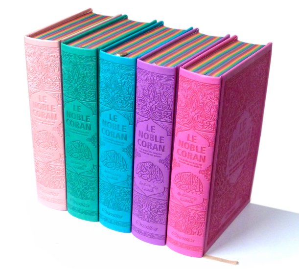 Pack N°2 de 5 Corans de luxe en 5 couleurs de couvertures différentes : Le Saint Coran (français/arabe/phonétique) avec pages en couleurs d'Arc-en-ciel (Rainbow) - REF. 28644 (145.00 €) - En Promotion à 129.00 € |