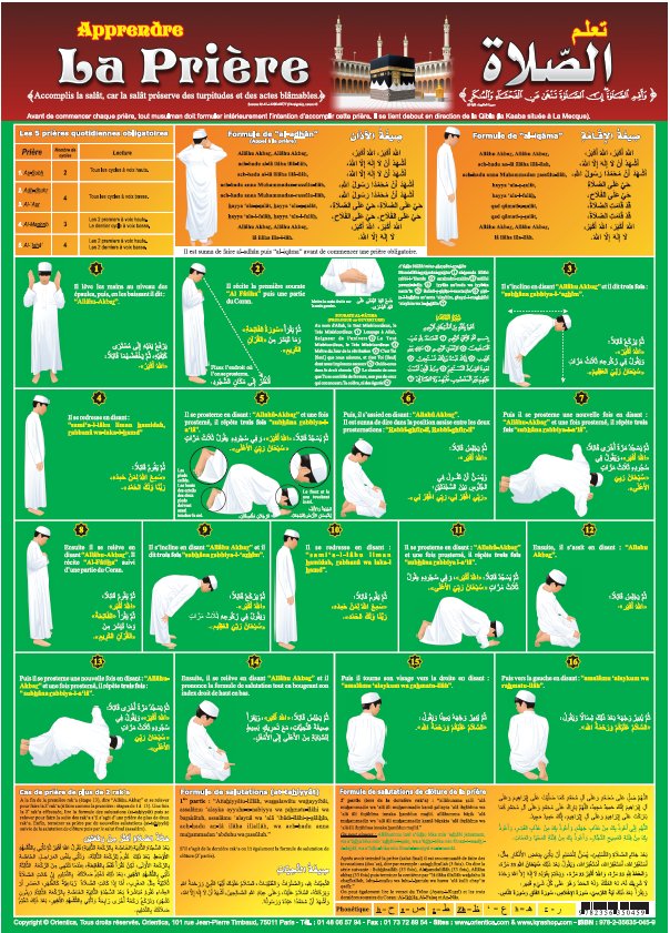 Poster : Apprendre la prière et les ablutions pour garçon (français - arabe - phonétique) - Apprentissage de la salât pour homme - REF. 9889 (2.00 €) |