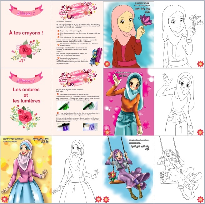 Pack de deux livres de coloriage dédiés aux petites filles musulmanes (de 4 à 12 ans) avec plus de 88 pages de coloriage ludique avec morales en français et arabe :