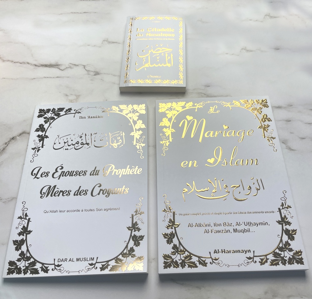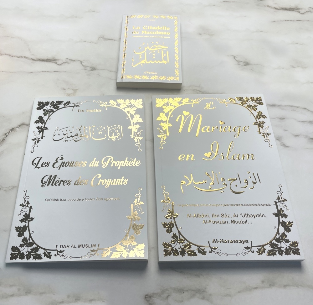 Recevez ce maghifique pack de 3 livres assortis de couleur blanche dorée :