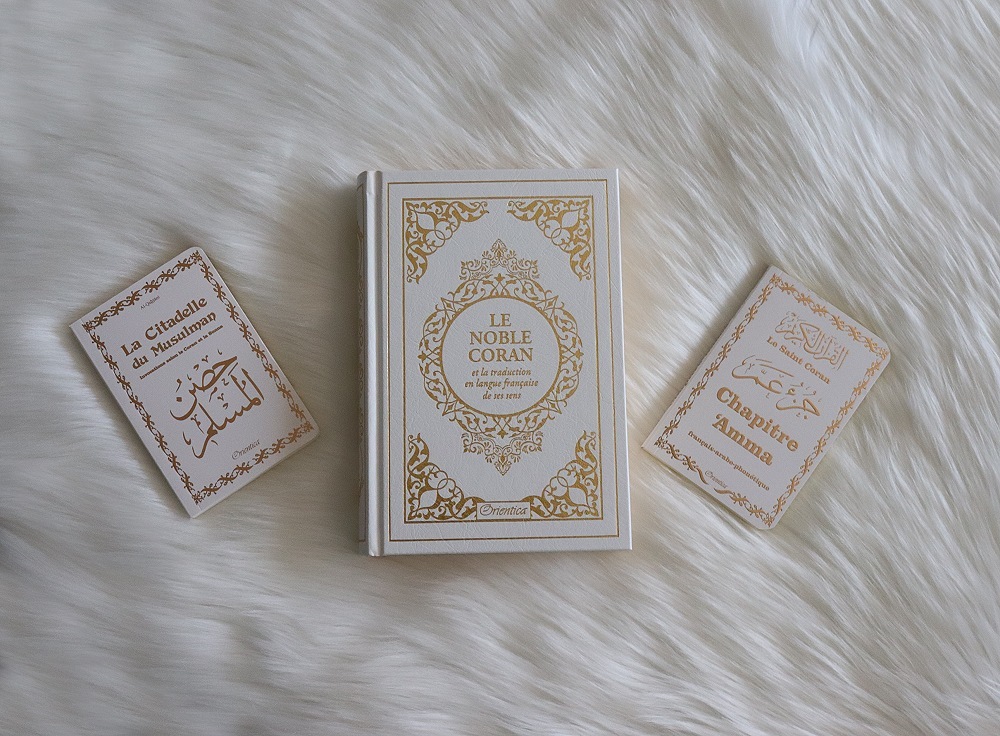 Pack Cadeau pour Femme (Le Noble Coran - La Citadelle du Musulman - Chapitre 'Amma - Les 40 hadiths) - Bilingue français/arabe - Couleur blanc doré - REF. 40907 (26.90 €) - En Promotion à 25.00 €