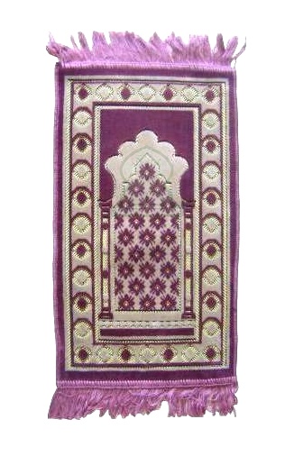 Tapis de prière (Sajjadat-Salat) pour enfants et ados musulmans avec dessin Kaaba - Couleur rose pour fille - contour bordeaux - REF. 34166 (7.50 €) - En Promotion à 5.90 €