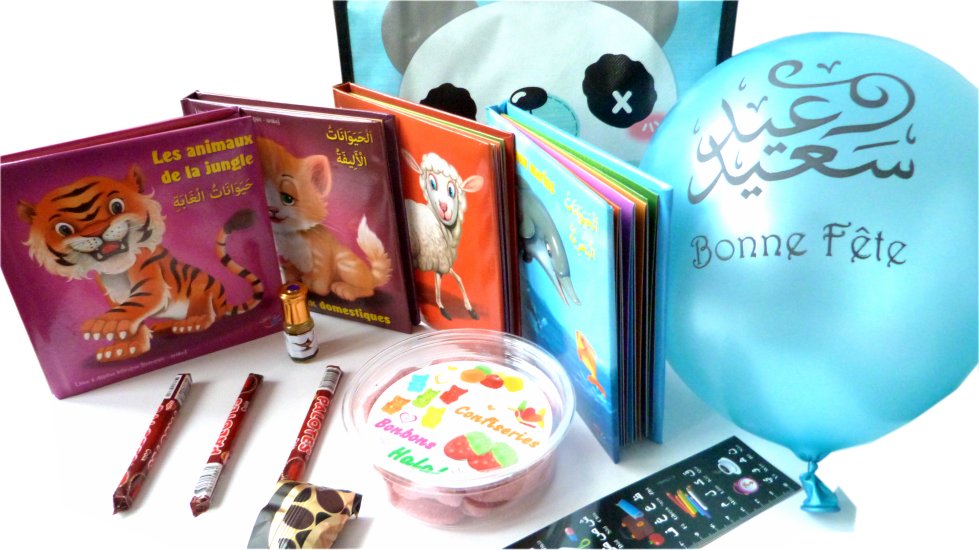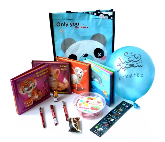 Le Mega Pack Cadeau : Sac surprise "langue arabe" (Ordinateur, Bonbons halal, Livres, DVD, Musc...) pour enfant, école... - REF. 15389 (28.00 €) - En Promotion à 19.90 €