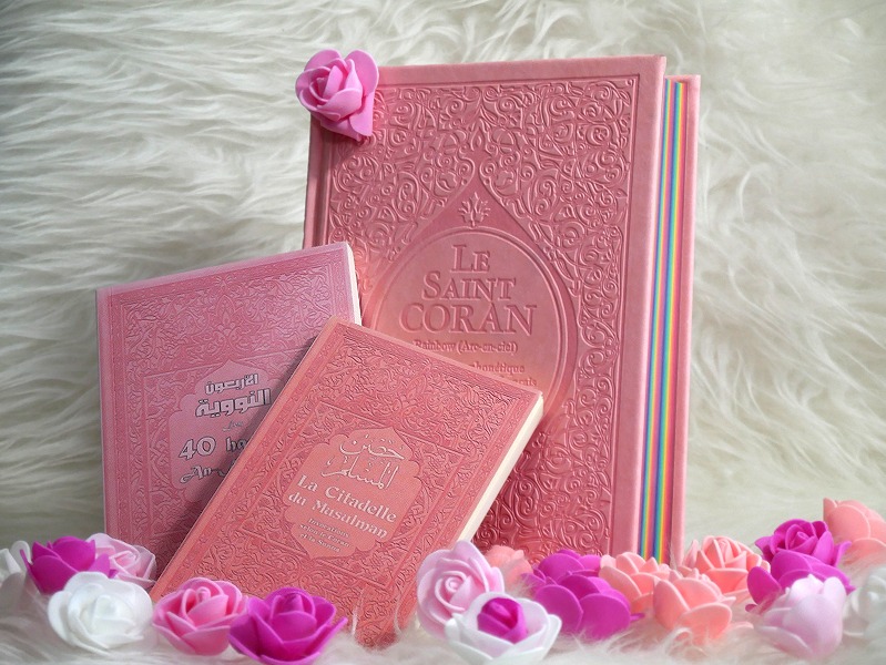 Pack Cadeau Islam rose clair pour femme musulmane : Le Saint Coran Rainbow (français/arabe/phonétique), Les 40 hadiths an-Nawawî et La citadelle du musulman Deco & Cadeau