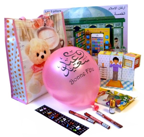 Pack Cadeau des Petits Musulmans : Invocations - Alphabet arabe - Bonnes manières (Livre, jeu, bonbon, jouet, parfum...) - REF. 23809 (28.00 €)