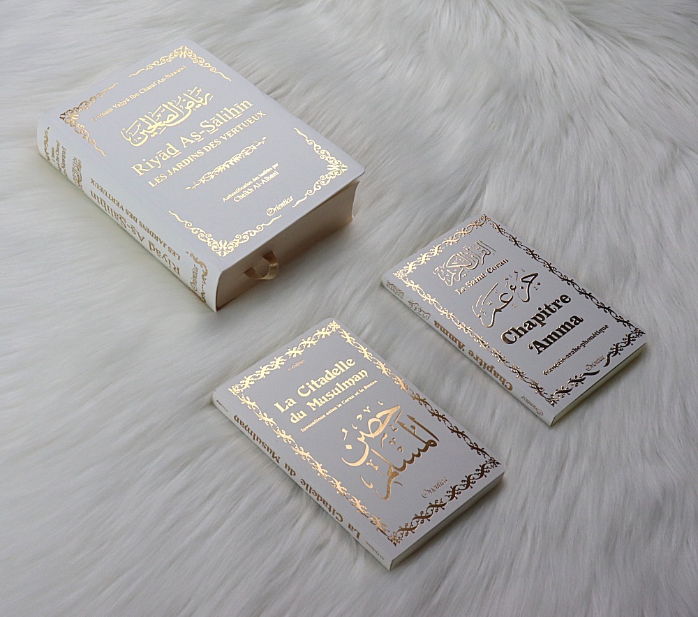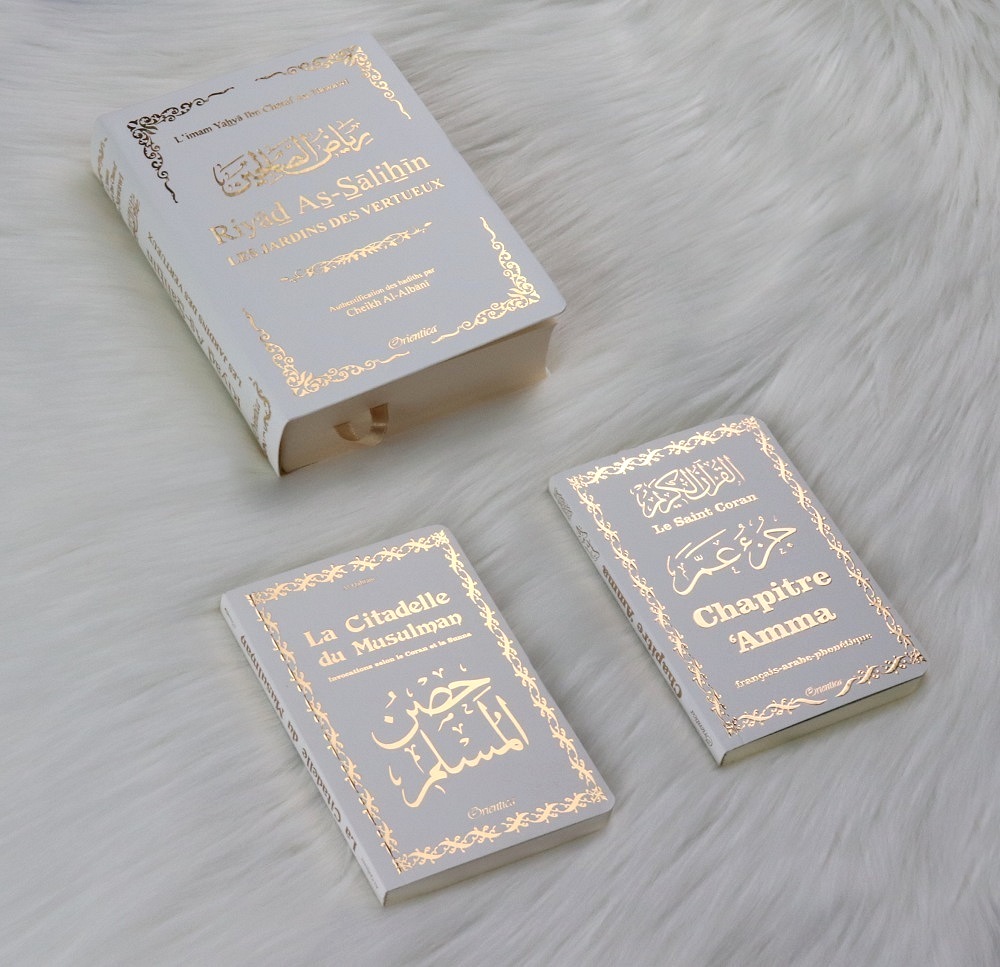 Pack Cadeau 4 livres blancs Dorés : Chapitre 'Amma - Les 40 Hadiths Nawawi - Sahîh Al Adhkâr - La Citadelle du Musulman - REF. 40621 (11.00 €)