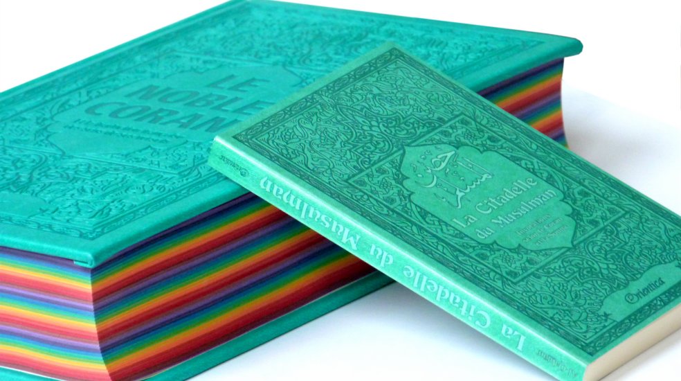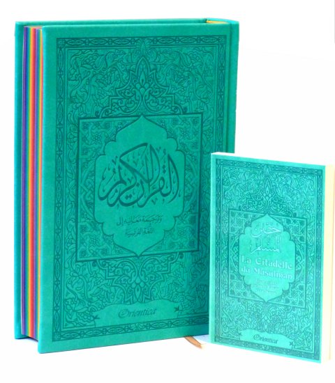 Cadeau pour musulman et musulmane : Le Saint Coran et la Citadelle du Musulman (français/arabe/phonétique) - Couleur vert-bleu - REF. 23602 (28.00 €) |