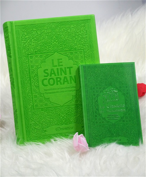 Pack Cadeau Musulman Vert clair : Le Saint Coran et La citadelle du musulman (francais/arabe/phonetique)