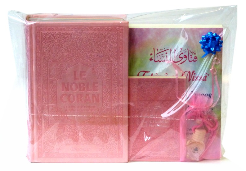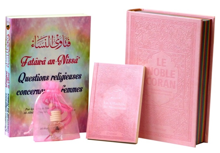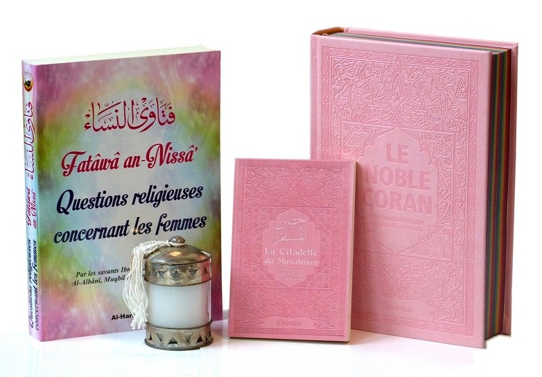 Pack Cadeau Rose pour Femmes : Coran Rainbow + La Citadelle + Livre : Fatâwâ an-Nissâ + Diffuseur de parfum ou Bougie (au choix) - REF. 24150 (34.90 €)