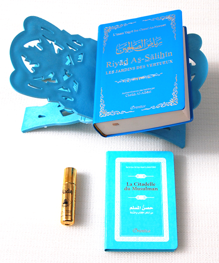 Pack Cadeau bleu (bilingue) : Riyad As-Salihîn, La Citadelle du musulman, Porte-Coran et parfum de luxe Deco & Cadeau Coup de coeur