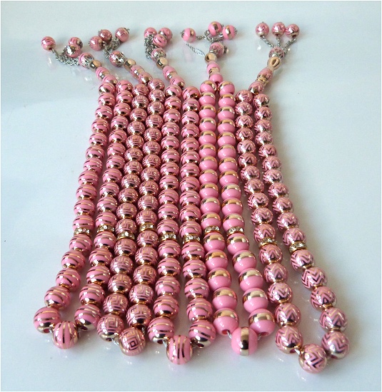 Chapelet (sebha) métallique de luxe 33 grains dorés pour femmes avec boitier rose - REF. 23429 (25.00 €) - En Promotion à 14.90 € |
