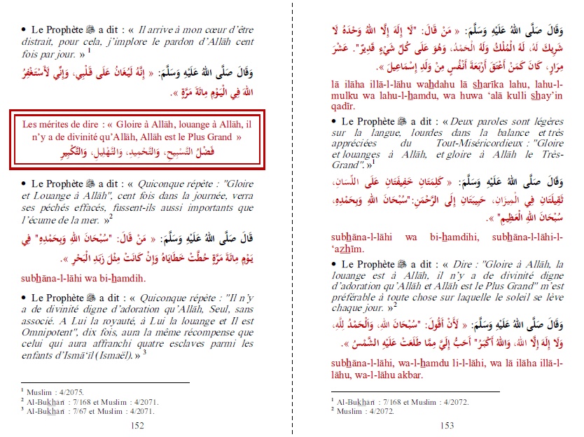Accessoires divers - Alimentation Halal - Apprentissage anglais - Apprentissage arabe - Apprentissage français - Apprentissage langues - Art & Culture - Artisanat & décoration - Beauté, Soins naturels - Bien-être - Biographies - Calligraphie - Chants (Nachids) - Compagnons - Comprendre l'Islam - Contes & histoires - Cours & Conférences - Cuisine - Culture berbère - Da'wa (Prédication) - Dicos & encyclopédies - Divers - Dogme ('Aqîda) - Economie & finance - Education - Electronique - Enfants - Ethique - Exhortation - Femme - Fondements du droit - Hadiths - Histoire & civilisations - Histoires du Coran - Idées Cadeaux - Informatique - Initiation à l’Islam - Interprétation rêves - Invocations (dou'â) - Islam & laïcité - Islam & Occident - Islam & Sciences - Islam contemporain - Jeûne (Ramadan) - Jeunesse - Jurisprudence - Littérature & poésie - Ludoéducatif - Mariage & Couples - Monde arabe - Mystique & Soufisme - Paradis - Enfer - Mort - Pèlerinage & ‘Omra - Philosophie - Politique & Géopol. - Pratique religieuse - Prénoms - Prêt-à-porter Femmes - Prêt-à-porter Hommes - Prophètes - Religions du Livre - Revues & Guides - Roqya & protection - Saint Coran - Santé & Diététique - Sciences du Coran - Sciences du Hadith - Société & Traditions - Sounna du Prophète - Spiritualité - Tafsîr (Exégèse) - Tajwîd (Règles) - Tourisme - Vie du Prophète saw - Zakat & aumône