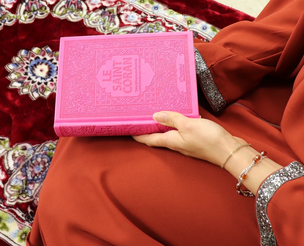 Coffret Cadeau pour femme - Pack Saint Coran (français-arabe-phonétique) et Chapelet "Sebha" de luxe rose pale assortis - REF. 22389 (29.90 €)