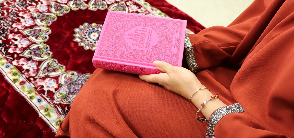 Coffret Cadeau Rose pour femme musulmane : Mug personnalisé + Le Saint Coran (fr/ar/phonétique) + La Citadelle du musulman (invocations en Islam) + Tapis de prière - REF. 24050 (42.00 €)