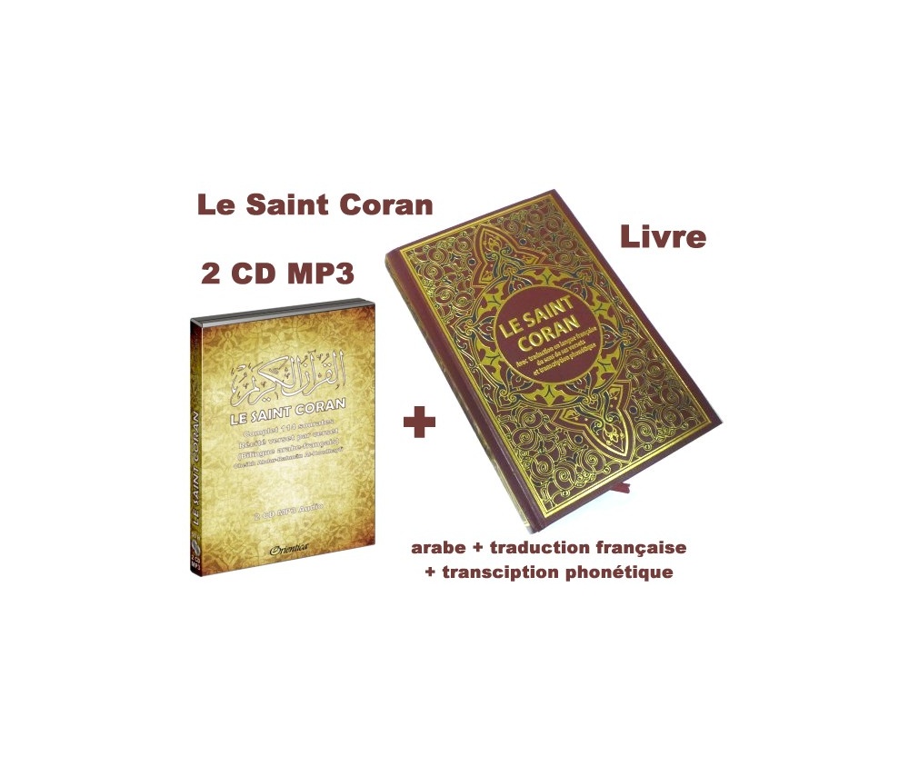 Pack Livre + Double CD MP3 (arabe / francais) : Le Saint Coran avec traduction en langue francaise du sens de ses versets et transcription phonetique