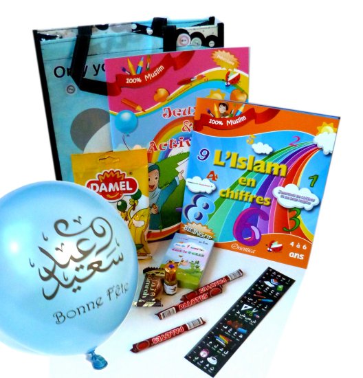 Le Mega Pack Cadeau : Sac surprise "J'apprends ma religion" (Ordinateur, Bonbons halal, Livres, DVD, Musc...) pour enfant, école arabe, etc. - REF. 15388 (28.00 €) - En Promotion à 19.95 €