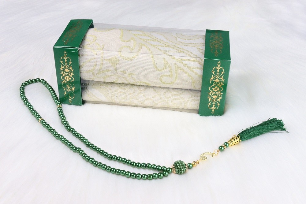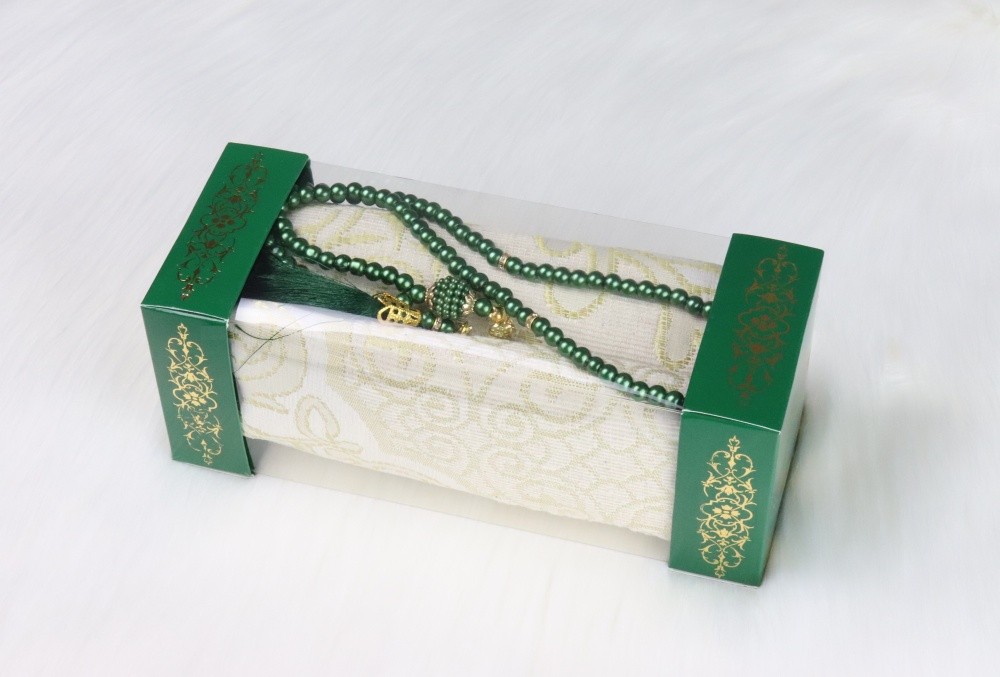 Pack cadeau Muslim Box : tapis de priere + sebha (chapelet musulman) - Couleur vert