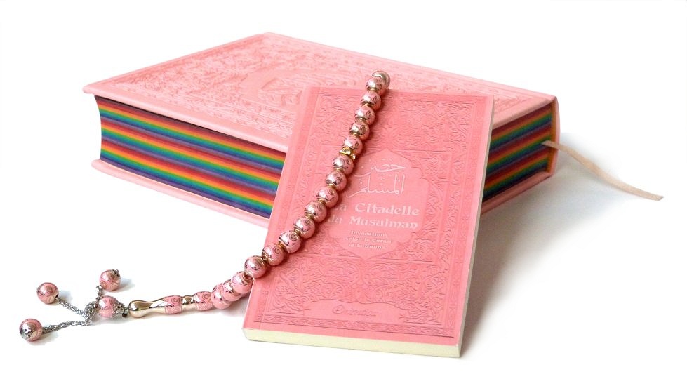Pack cadeau coranique Rose : Le Saint Coran Rainbow Bilingue (aux couleurs Arc-en-ciel) + La Citadelle du Musulman (français/arabe/phonétique) + Chapelet - REF. 24070 (29.90 €)