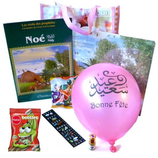 Pack Cadeau Enfant : Livre Les Histoires des Prophètes Racontées aux Enfants + Confiseries Bonbons Halal + Tapis de prière enfant + 10 ballons "Aïd Moubarak" - REF. 23172 (24.00 €)
