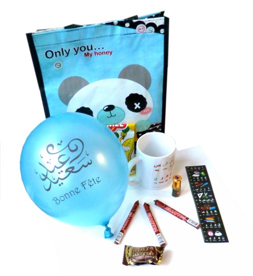 Le Mega Pack Cadeau : Sac surprise "langue arabe" (Ordinateur, Bonbons halal, Livres, DVD, Musc...) pour enfant, école... - REF. 15389 (28.00 €) - En Promotion à 19.90 €