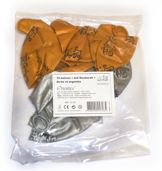 Pack de 10 ballons multicolores "Aid Moubarak" (arabe et français) - عيد مبارك - REF. 9298 (2.90 €) - En Promotion à 2.50 €