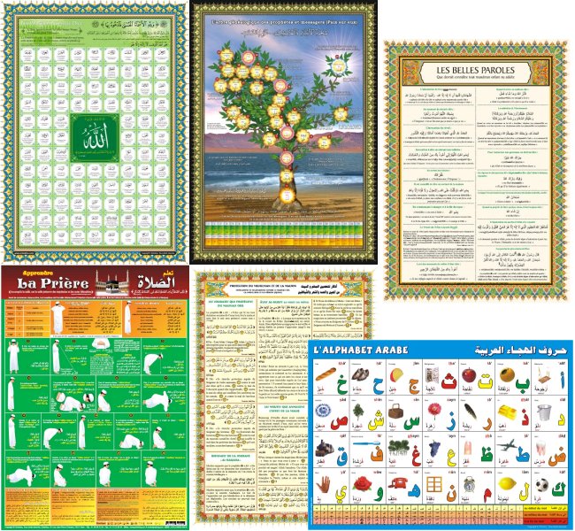 Pack 10 Posters de référence : Prière - Coran - Alphabet arabe - 99 Noms d'Allah - Prophètes - Invocations - Protection... - REF. 15396 (20.00 €) - En Promotion à 16.00 €