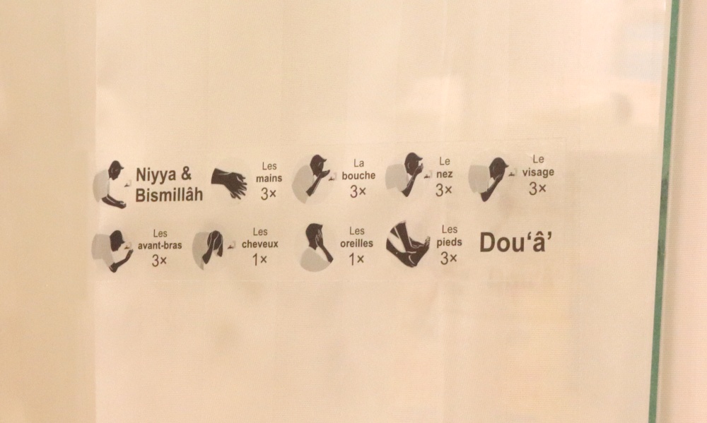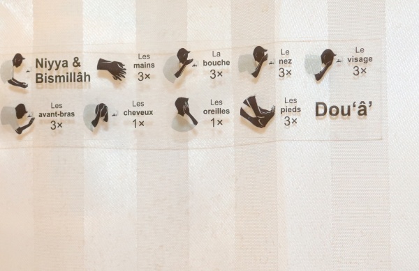 Découvrez les Stickers et les récipients spécial pour faire les ablutions avec schéma des différentes étapes à respecter dans l'ordre pour faire les ablutions de façon correcte.