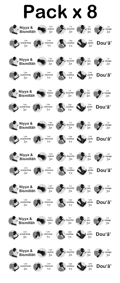 Pack de 8 Stickers Autocollants pour les ablutions (woudou) à coller dans la salle de bain pour aider à faire le wudu (Fond blanc) - REF. 35685 (4.00 €)