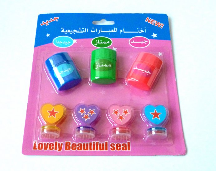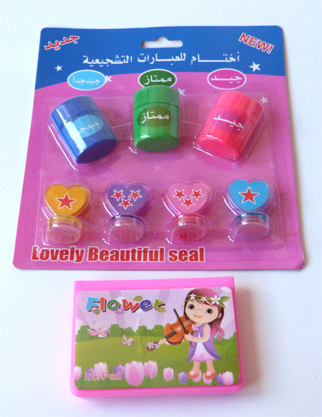 Pack de tampons de motivation et de récompense pour encourager les enfants (7 tampons et un encreur) - Pour filles - REF. 23539 (6.50 €) - En Promotion à 4.50 €