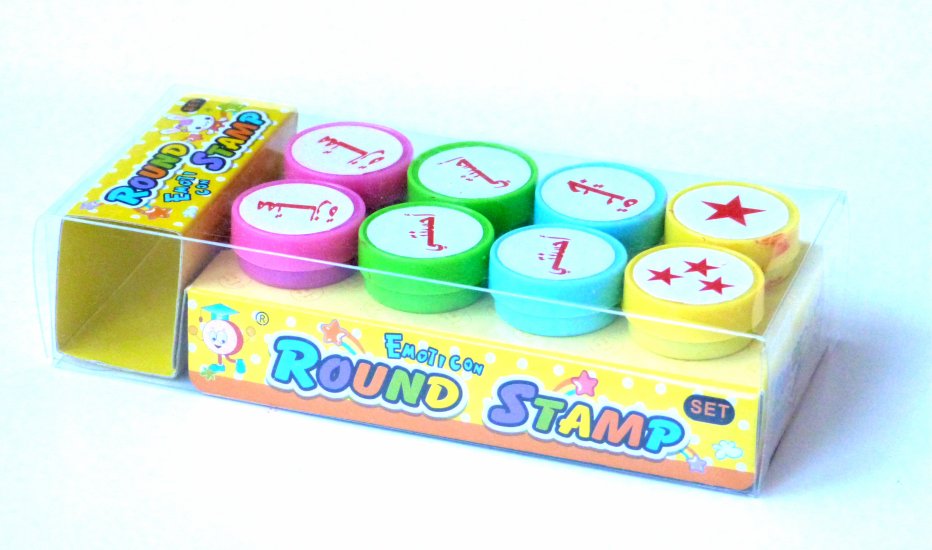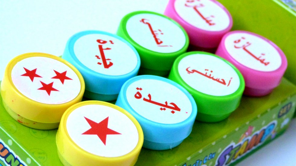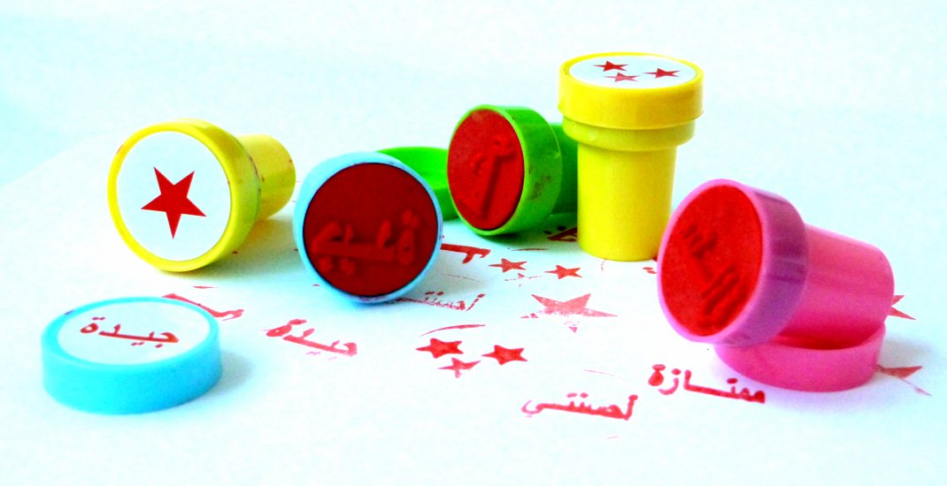 Chaque tampon contient son propre encreur intégré et permet d'apposer sur le cahier de l'élève un message d'encouragement (en langue arabe) ou des étoiles (une ou trois étoiles).