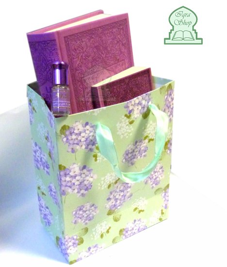 Pack cadeau musulman pas cher de couleur mauve avec 2 livres "Les 40 hadiths" et "La Citadelle du musulman" (bilingues français/arabe) - Parfum deluxe - Sac cadeau - REF. 26976 (9.00 €)
