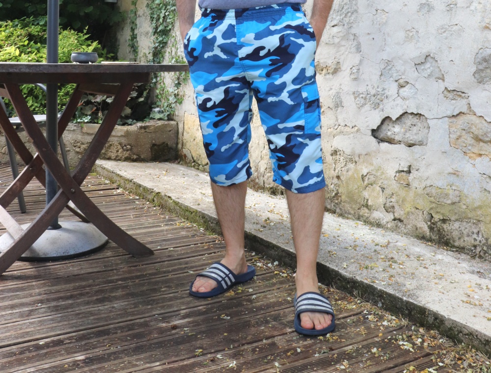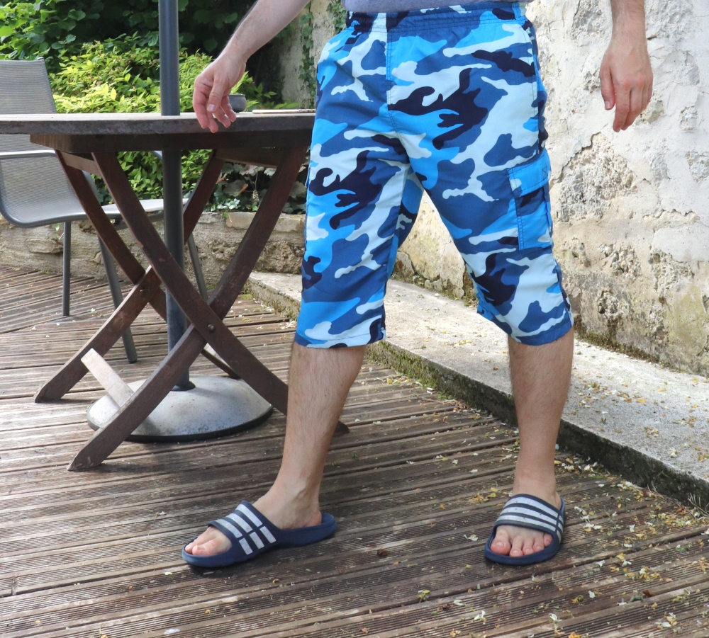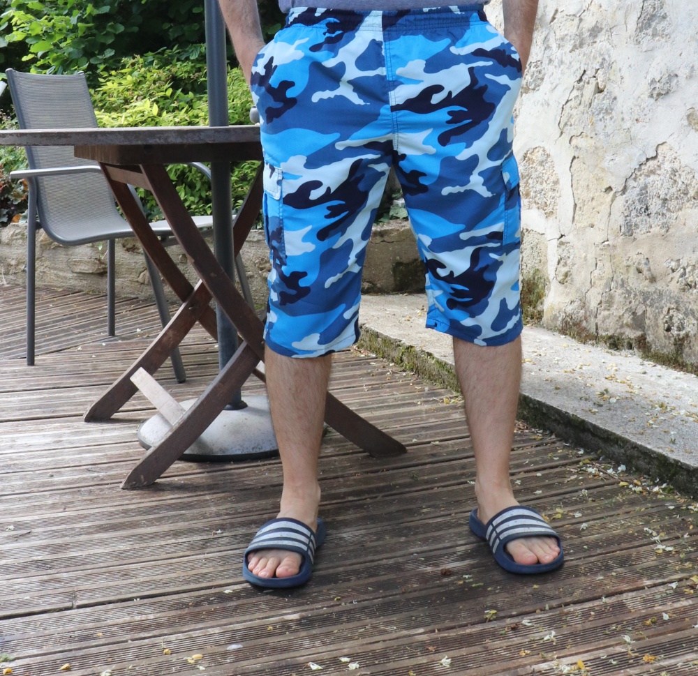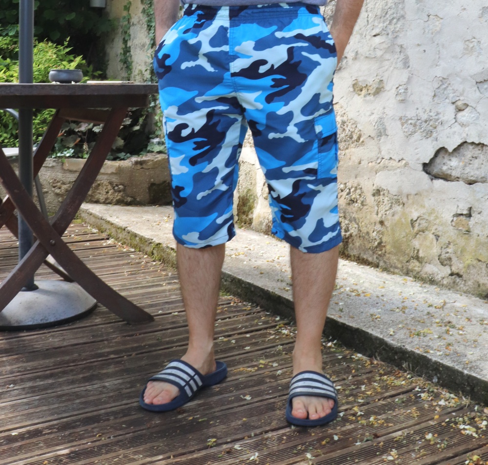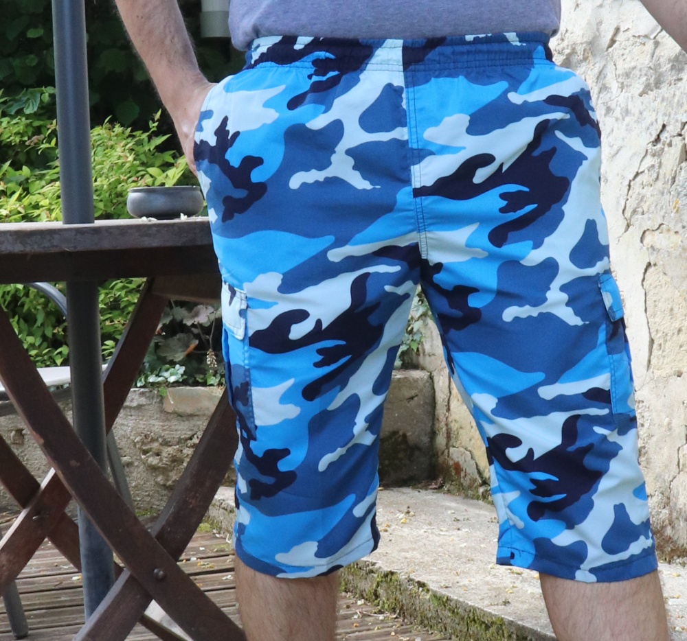 Pantacourt été - Short de bain - Bermuda de plage - Sarouel de Bain long genoux pour homme motif camouflage militaire - Couleur bleu marine, gris et bleu roi - REF. 36374 (12.00 €)