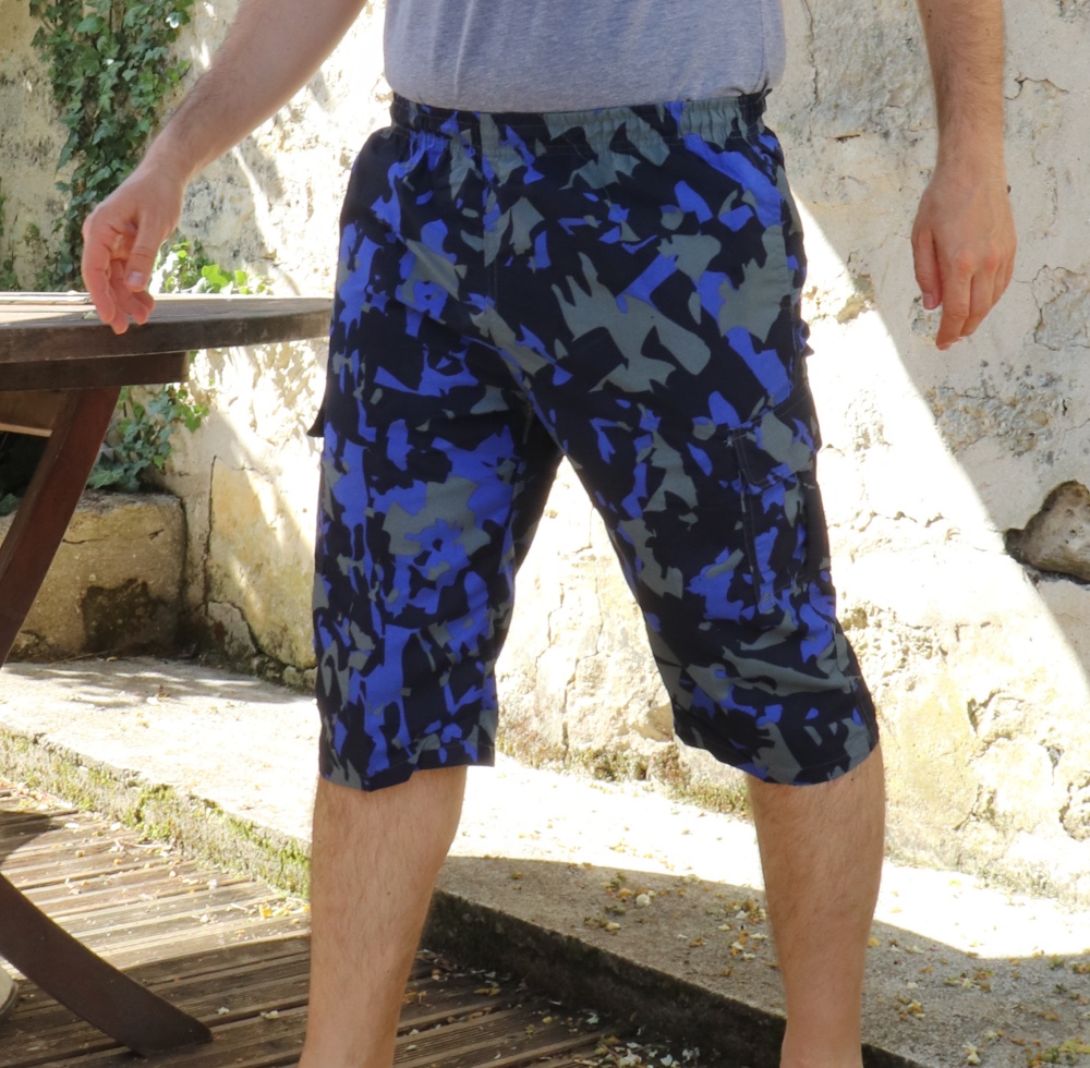 Pantacourt été - Short de bain - Bermuda de plage - Sarouel de Bain long genoux pour homme motif camouflage militaire - Couleur bleu marine, gris et bleu roi - REF. 36374 (12.00 €)