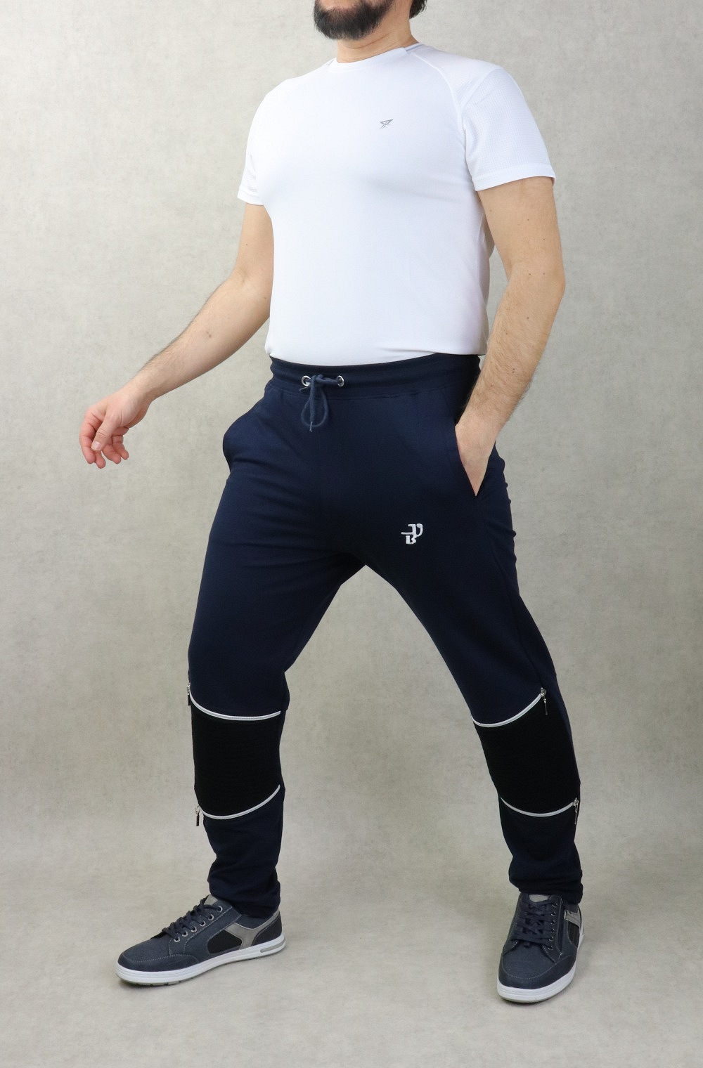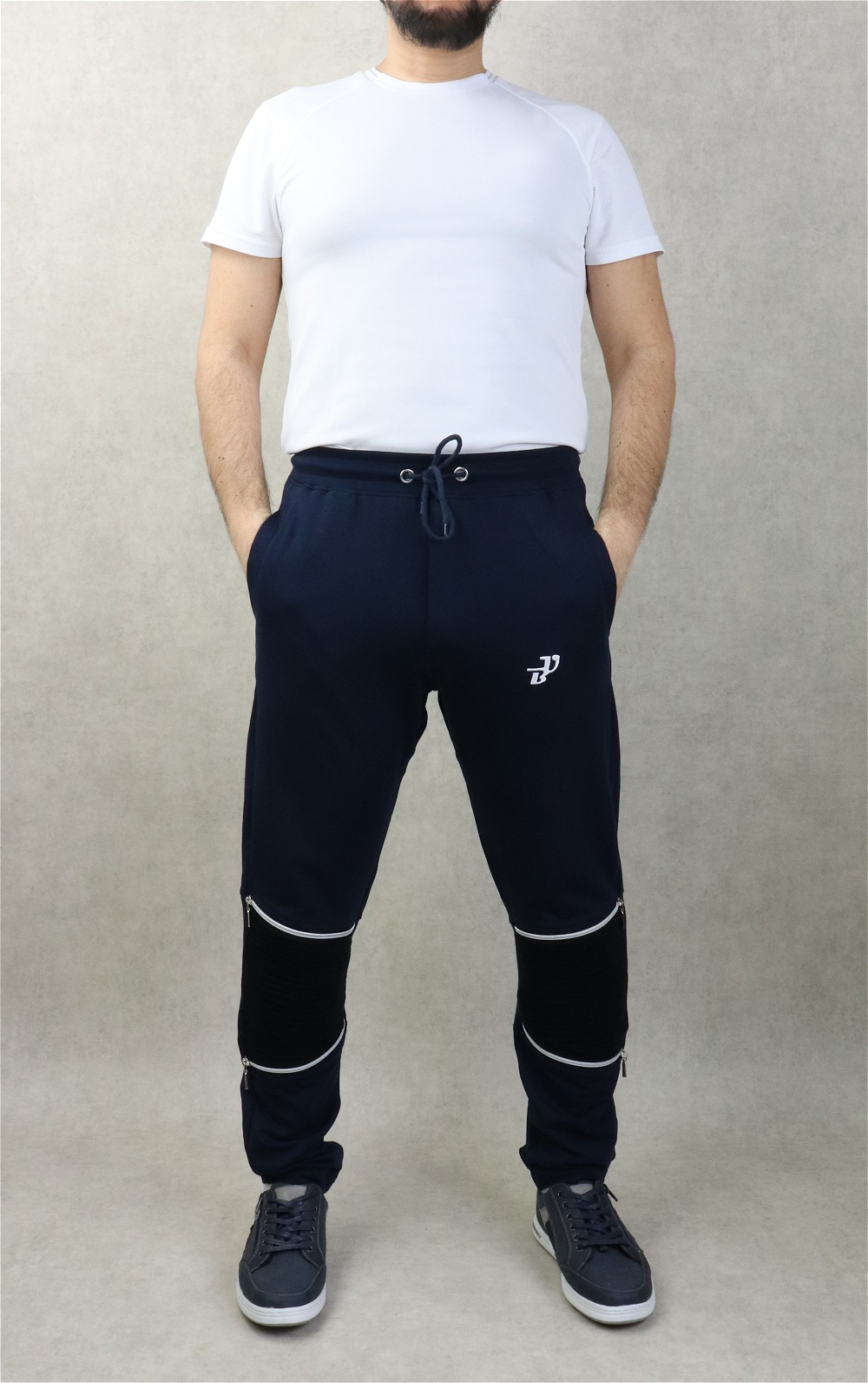 Pantalon Jogging léger genoux zippés pour homme - Marque Best Ummah - Couleur Bleu marine - REF. 36739 (28.00 €)