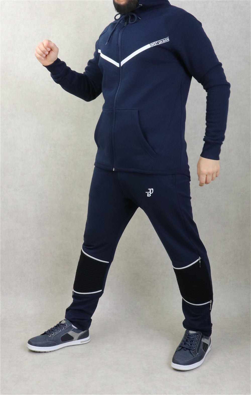 Pantalon Jogging molletonné genoux zippés pour homme - Marque Best Ummah - Couleur Bleu marine - REF. 36735 (28.00 €)