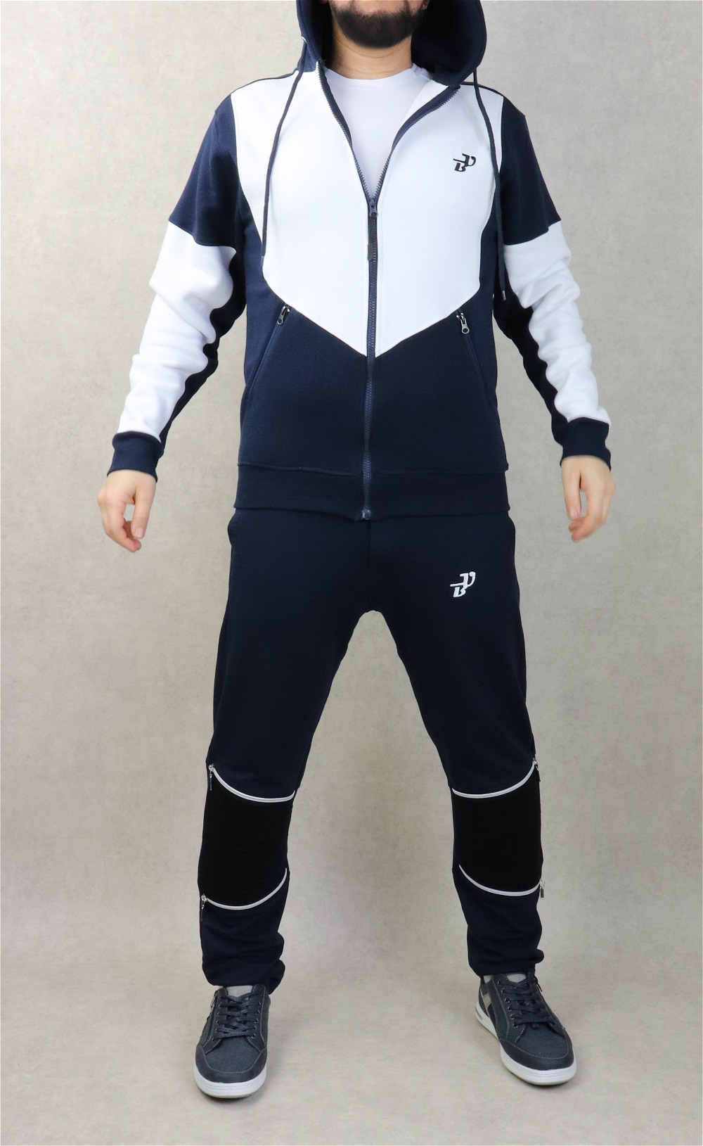 Veste jogging molletonné bicolore à capuche de marque Best Ummah - Couleur Bleu marine et blanc - REF. 36721 (29.00 €)