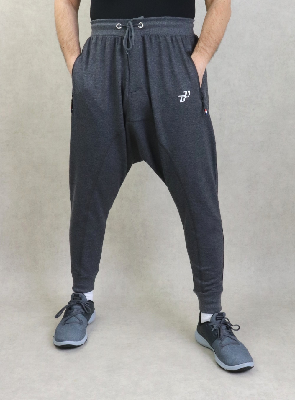 Pantalon jogging type Sarouel molletonné zippé aux chevilles pour homme - Marque Best Ummah - Couleur Gris foncé chiné - REF. 36500 (29.90 €)