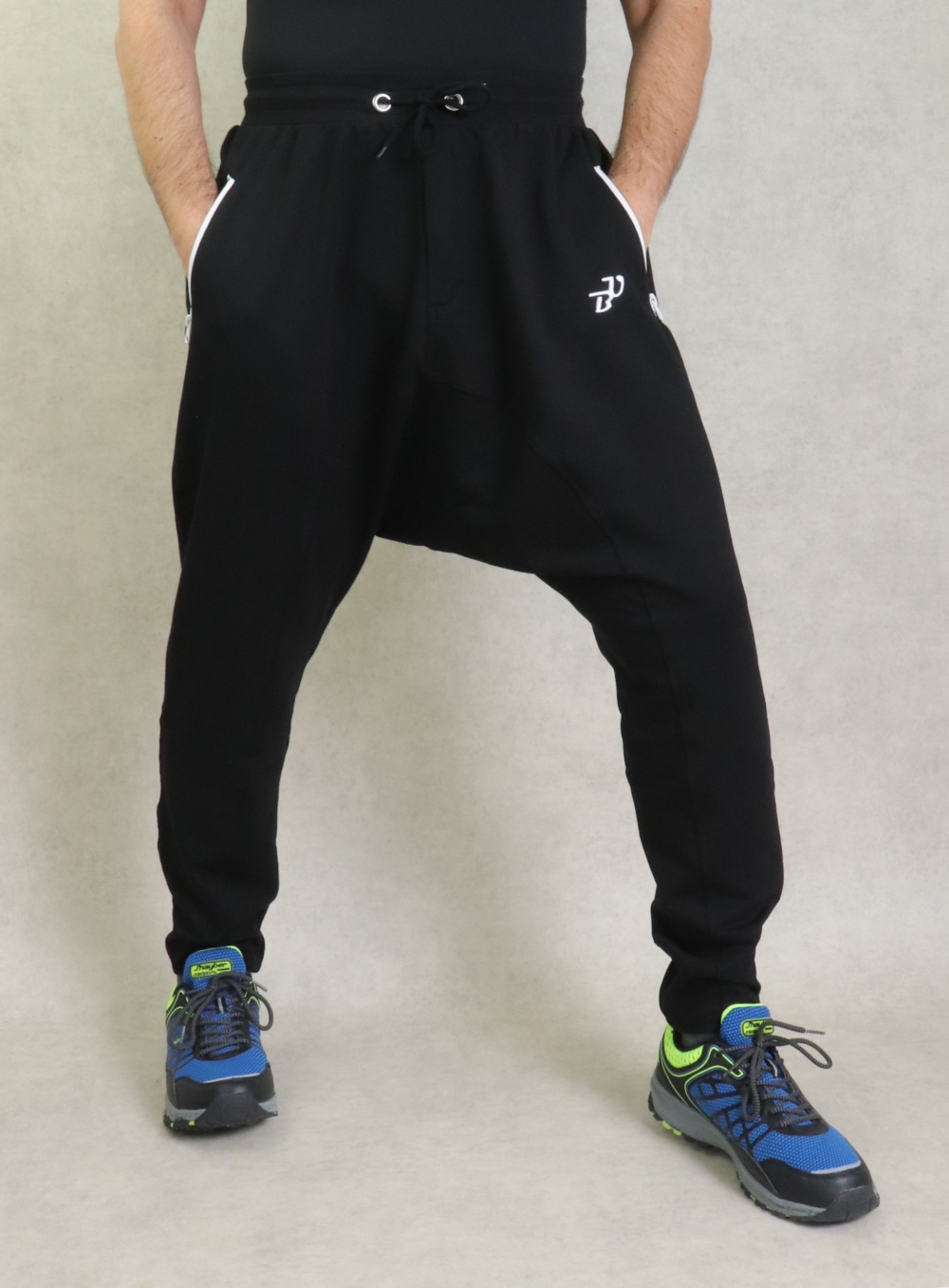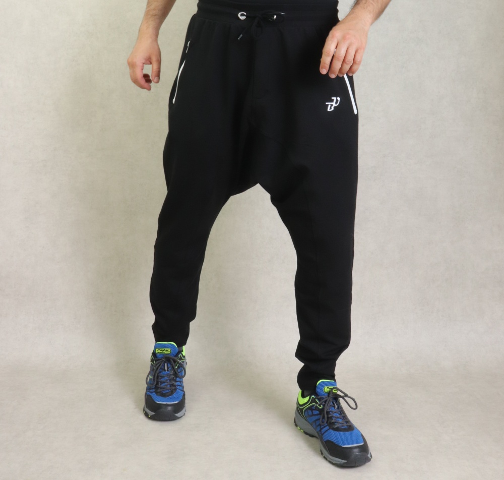 Pantalon Saroual Jogging molletonné poches zip blanches pour homme - Marque Best Ummah - Couleur noir - REF. 36843 (29.90 €)